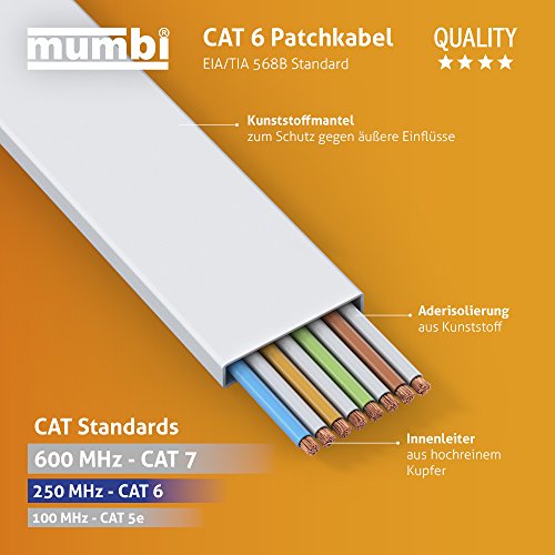 Mumbi 26633 Cat.6 UTP Cavo di Rete Ethernet Patch con connettori RJ-45, ultra piatto 20.0m, bianco