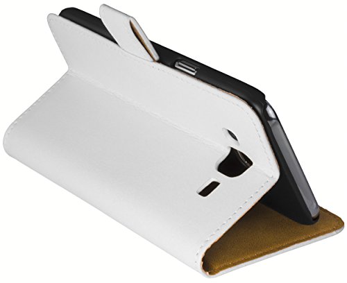 Mumbi Borsa in vera pelle Bookstyle compatibile con Samsung Galaxy J5 (2015), bianco