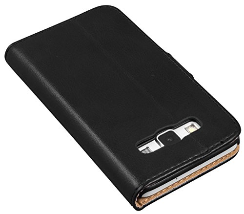Mumbi Borsa in vera pelle Bookstyle compatibile con Samsung Galaxy A3 (2015), nero
