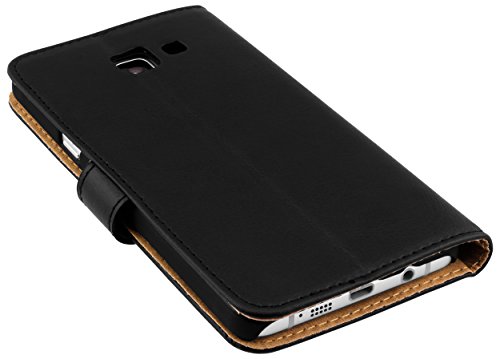 Mumbi Borsa In Vera Pelle Bookstyle Compatibile Con Samsung Galaxy A5 (2016), Nero