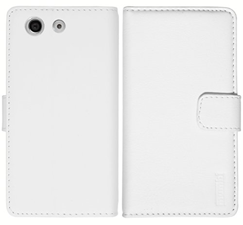 Mumbi Borsa in vera pelle Bookstyle compatibile con Sony Xperia Z3 Compact, bianco