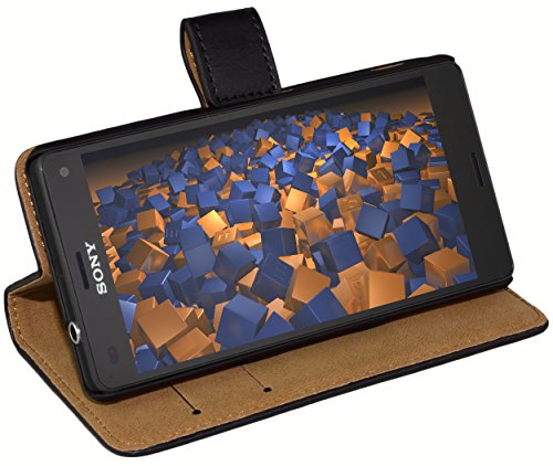 Mumbi Borsa in vera pelle Bookstyle compatibile con Sony Xperia Z3 Compact, nero
