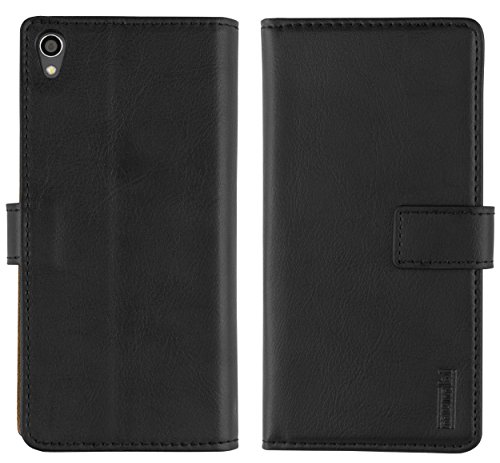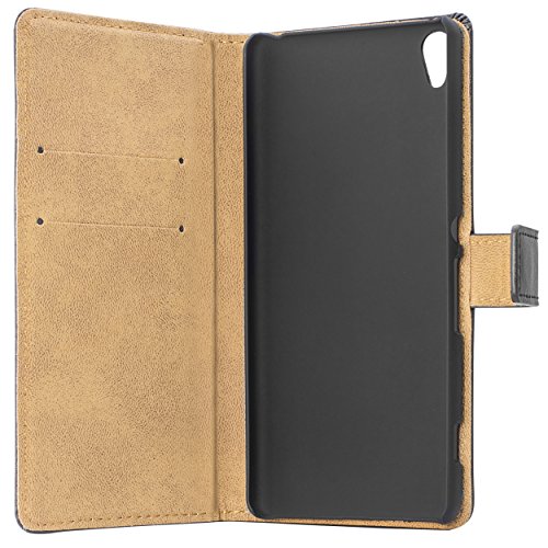 Mumbi Borsa in Vera Pelle Bookstyle Compatibile con Sony Xperia XA, Nero