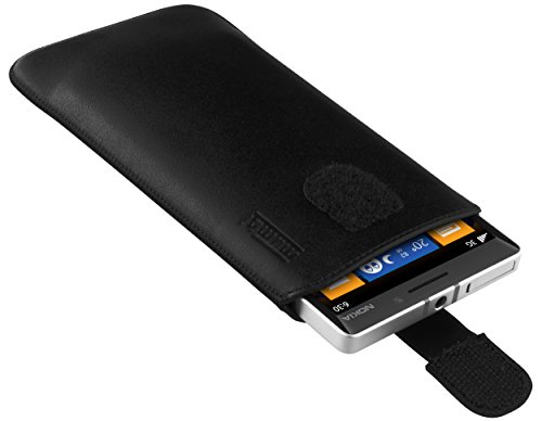 Mumbi Borsa in vera pelle compatibile con Nokia Lumia 930, (Linguetta con funzione di retrazione, supporto estraibile), nero