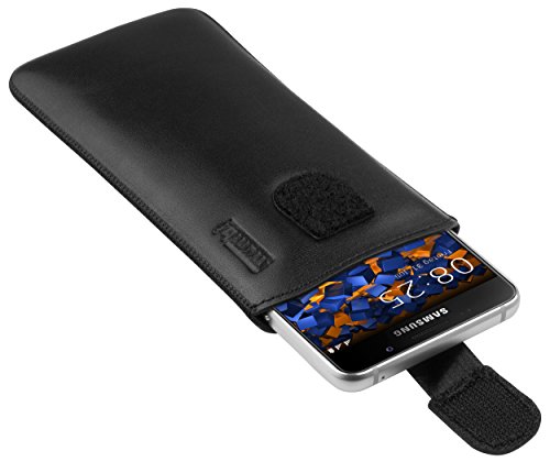 Mumbi Borsa in vera pelle compatibile con Samsung Galaxy A3 (2016), (Linguetta con funzione di retrazione, supporto estraibile), nero