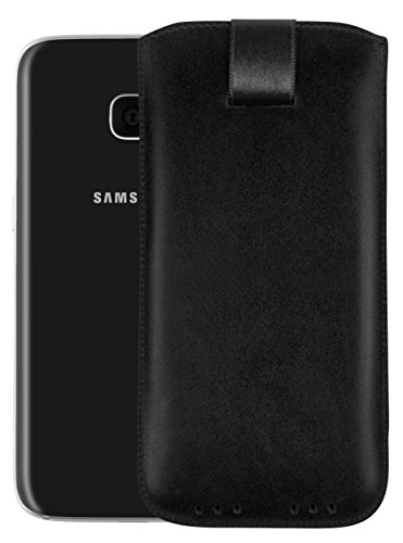 Mumbi Borsa in vera pelle compatibile con Samsung Galaxy S7, (Linguetta con funzione di retrazione, supporto estraibile), nero