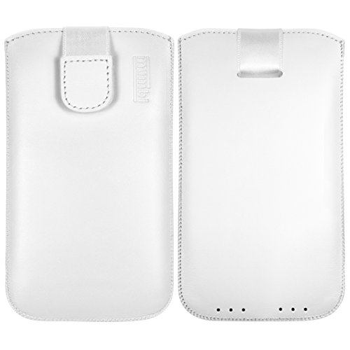 Mumbi Borsa in vera pelle compatibile con Samsung Galaxy A3 (2016), (Linguetta con funzione di retrazione, supporto estraibile), bianco