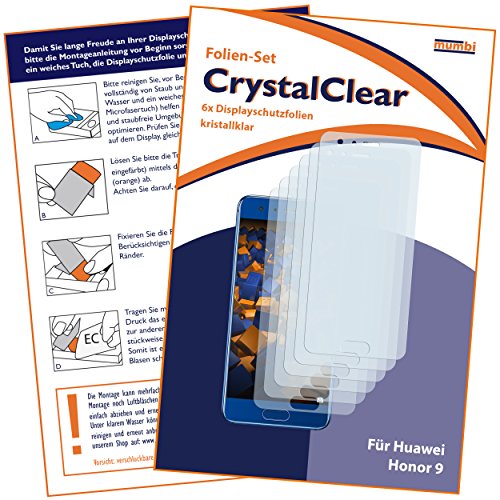 Mumbi - 6 pellicole protettive per Huawei Honor 9 (intenzionalmente più piccole del display, essendo questo curvo)