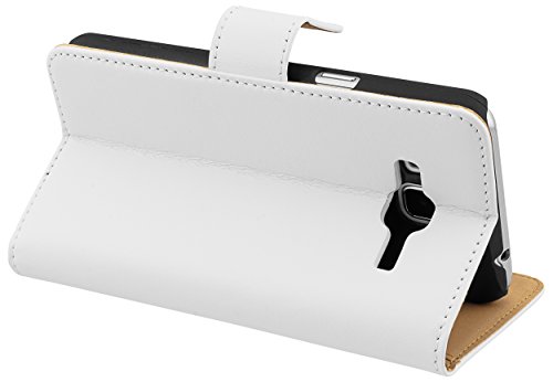 Mumbi Tasca Bookstyle compatibile con Samsung Galaxy J3 (2016), bianco