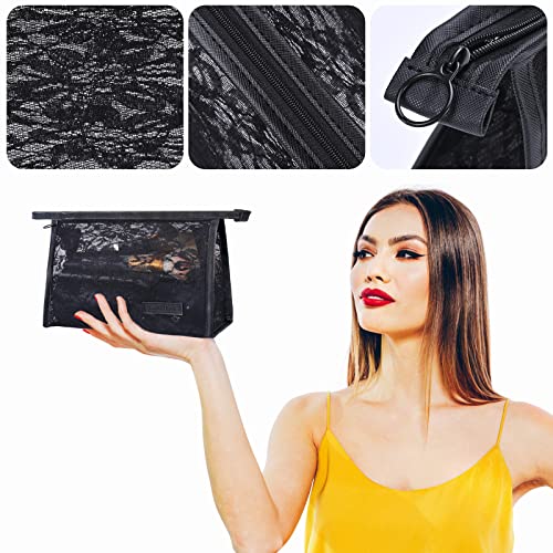 MumdoYAL Set di astucci per trucchi in rete - Borse portatili con cerniera per cosmetici e accessori - Casa, ufficio e in viaggio - Set di 3 diverse dimensioni (Pizzo)