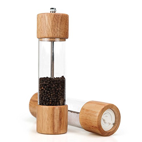 MumoHome Macina Sale e Pepe in Legno e Plastica Design Elegante - Macina Sale e Pepe Manuale in Legno e Acrilico Trasparente da Tavola - Macina Sale e Pepe Classico - Macina Spezie Manuale per Sale Grosso e Aromi (2 ps)