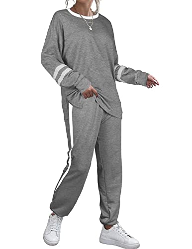 MUMZUGI Tuta Donna Sportivi Completi Due Pezzi Maglietta Manica Lunga Pantaloni Lunghi Sportswear Pigiama Set da Casa Grigio M
