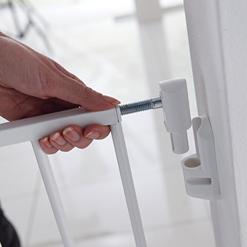 Munchkin Cancelletto di Sicurezza Estensibile, Barriera in Metallo per Scale e Vani Porta senza Fascia Inferiore per Bambini o Animali Domestici, Larghezza: da 64.5-102 cm, Colore: Bianco