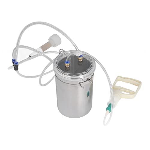 Materiale durevole: questo kit di mungitura portatile adotta una bottiglia in acciaio inossidabile e un tubo in PU, durata. Questa mungitrice manuale presenta una forte potenza di aspirazione e può essere facilmente controllata.
