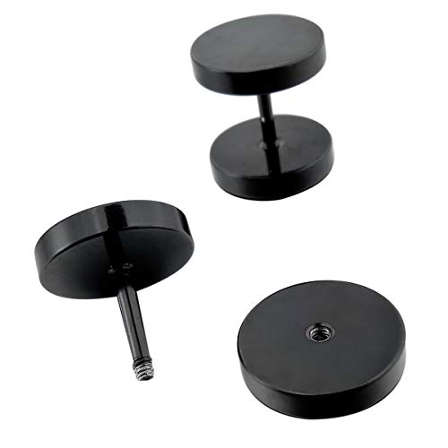 MunkiMix 3~14mm Acciaio Inossidabile Studs Orecchini Tono Argento Tapers Falso Piercing Double Side Uomo,Donna