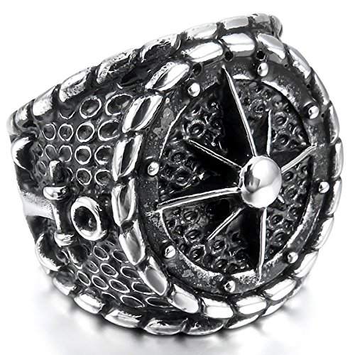 MunkiMix Acciaio Inossidabile Anello Anelli Tono Argento Nero Ancoraggio Vela Sterzo Volante Ruota Uomo