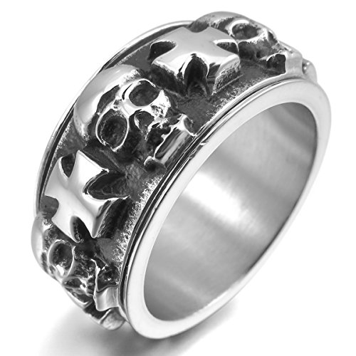 MunkiMix Acciaio Inossidabile Anello Anelli Argento Nero Celtico Celtic Medieval Croce Cranio Teschio in Movimento Uomo