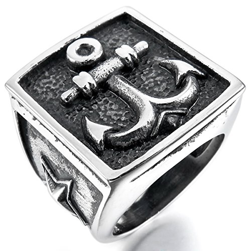 MunkiMix Acciaio Inossidabile Anello Anelli Tono Argento Nero Fortunato Stella di David Ancoraggio Retro Uomo