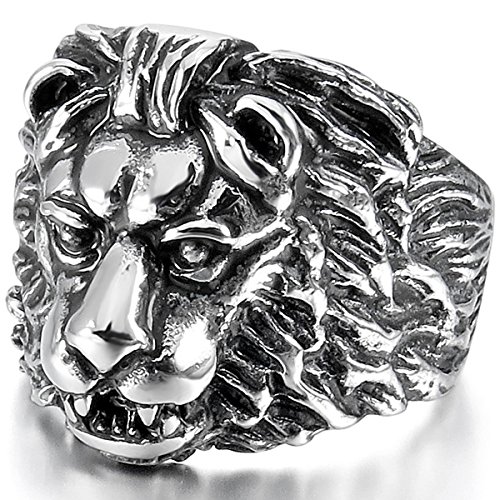 MunkiMix Acciaio Inossidabile Anello Anelli Banda Argento Oro Tono Nero Lion Leone Testa Uomo