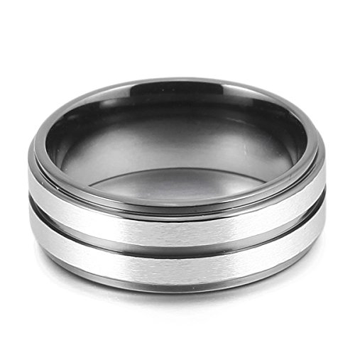 MunkiMix Acciaio Inossidabile Anello Anelli Banda Argento Nero Uomo