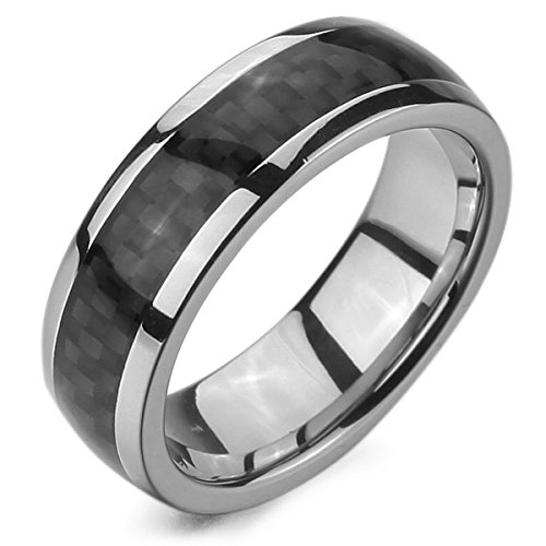 MunkiMix Acciaio Inossidabile Carbonio Anello Anelli Banda Tono Argento Nero Uomo