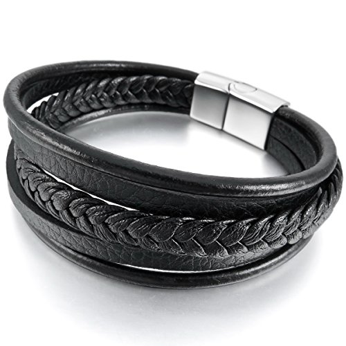 MunkiMix Acciaio Inossidabile Vera Pelle Lega Bracciali Bracciale Braccialetto Bangle Polsino Nero Tono Argento Marrone Intrecciato Magnetica Fibbia Uomo