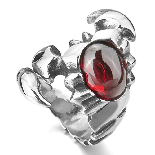 MunkiMix Acciaio Inossidabile Zirconia Cubica Zircone Anello Anelli Tono Argento Rosso Scorpione Uomo