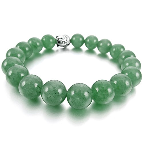 MunkiMix 10mm Lega Bracciale Energia Collegamento Polso Energia Stone Avventurina Verde Tono Argento Buddha Preghiera di Mala Perline Uomo,Donna