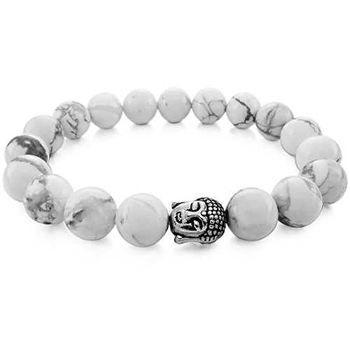 MunkiMix 10mm Lega Bracciale Energia Collegamento Polso Energia Stone Bianco Turchese Buddha Preghiera di Mala Perline Donna,Uomo