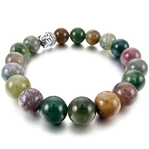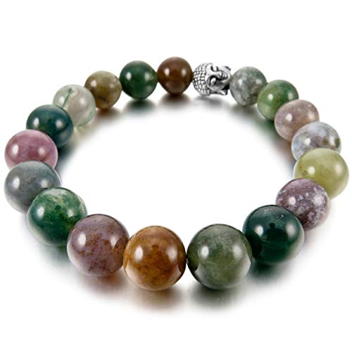 MunkiMix 10mm Lega Bracciale Energia Collegamento Polso Energia Stone Verde Tono Argento Indiano Agata Agate Buddha Preghiera di Mala Perline Elastico Donna,Uomo