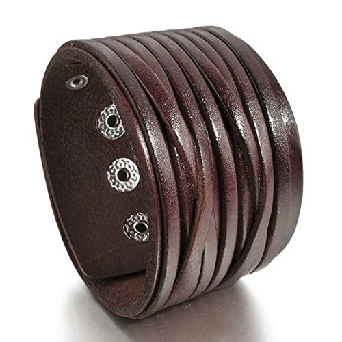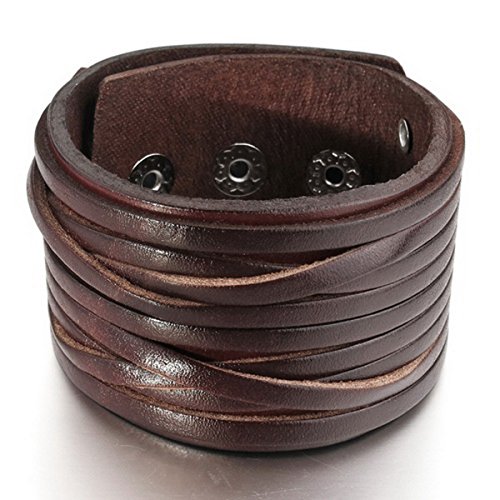 MunkiMix Grande Lega Vera Pelle Lega Bracciali Bracciale Braccialetto Bangle Polsino Marrone Tono Argento Nero Bianco Regolabile Adatto 7~9 Pollici Uomo