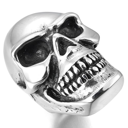 MunkiMix Grande Pesante Acciaio Inossidabile Anello Anelli Tono Argento Cranio Teschio Uomo