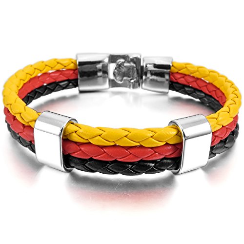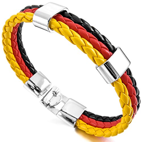 MunkiMix Lega Pelle Bracciali Bracciale Braccialetto Bangle Polsino Tedesca Germania Spagna italiano Francese Brazil Bandiera Uomo,Donna