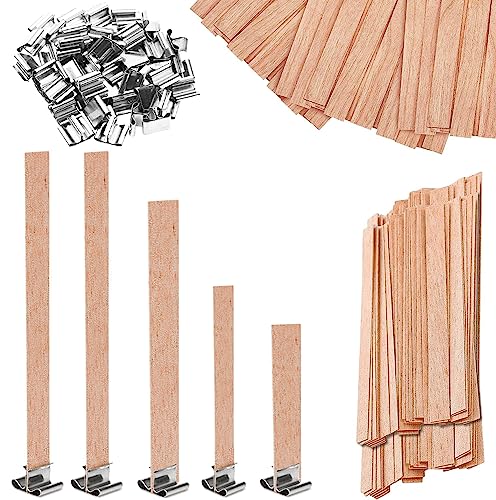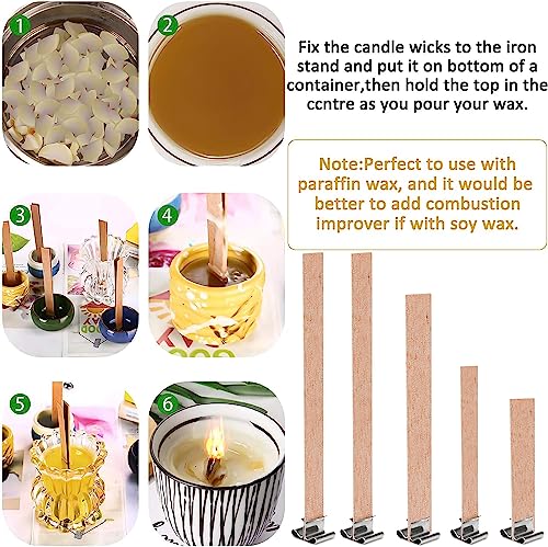 Accessori per candele fai-da-te: 50 pezzi di stoppino in legno di candela, 5 diverse dimensioni, con 50 pezzi di stoppino per candele con struttura in ferro, utilizzato per la fabbricazione di candele e stoppino di protezione ambientale naturale