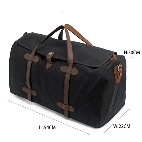 Mupack Waxed Canvas Duffle Weekender Bag Roomy Vintage Mens Holdall Hiking Travel Handbags Satchel Shoulder Pack Black