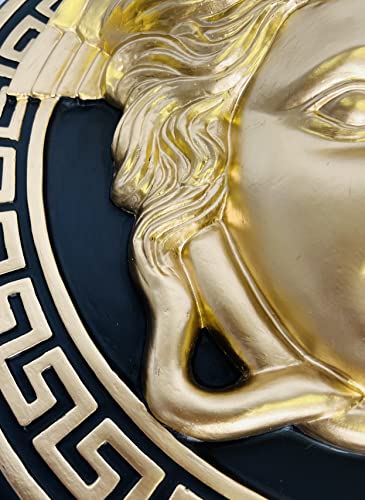 Murale in rilievo da parete Medusa testa meandro nero oro Versac stile 50 cm dipinto a mano retro vintage testa greca da appendere
