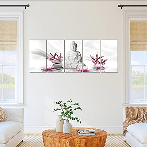Runa Art Murali XXL Budda Feng Shui 200 x 80 cm Grigio Rosa 5 Pezzi - Made in Germany - 011655a