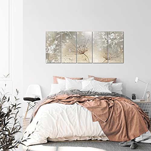Runa Art Murali XXL Dente Di Leone 200 x 80 cm Beige Marrone 5 Pezzi - Made in Germany - 205555a
