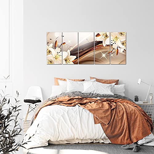 Runa Art Murali XXL Fiori Gigli 200 x 80 cm Beige Marrone 5 Pezzi - Made in Germany - 004255b