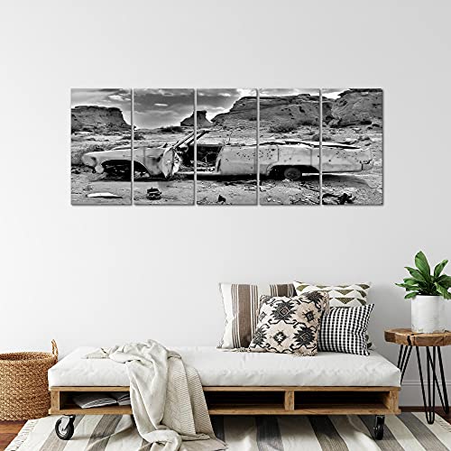 Runa Art Murali XXL Macchina Grand Canyon 200 x 80 cm Bianco e Nero 5 Pezzi - Made in Germany - 602255c