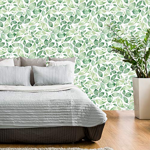 Murando Carta da parati adesiva Foglia 10 m Stickers Murali Carta da parati moderna Fotomurali adesivi Carta da parati autoadesiva Fotomurale Stickers da muro green bianco Nature b-C-0249-j-a