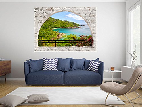 Murando ILLUSIONE OTTICA 3D Carta da parati sulla fliselina Carta da parati in TNT Quadri murali Fotomurale Finestra Pietra Mare Spiaggia Duna 70x50 cm