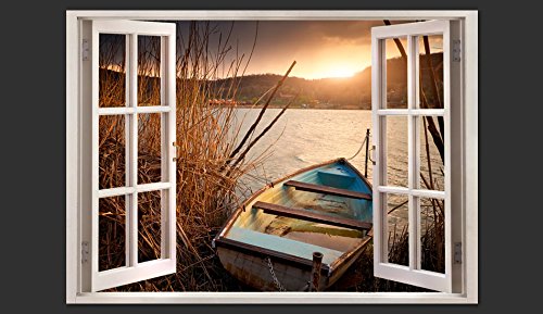 Murando ILLUSIONE OTTICA 3D Carta da parati sulla fliselina Carta da parati in TNT Quadri murali Fotomurale Finestra Mare Barchetta Natura 70x50 cm