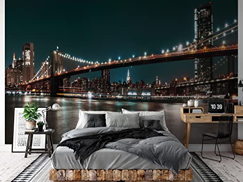 Murando PREMIUM Carta da parati New York City 350x256 cm Fotomurali in TNT Murale alla moda Decorazione da Muro XXL Poster Gigante Design Carta per pareti Brooklyn Ponte notturno d-B-10002-a-a