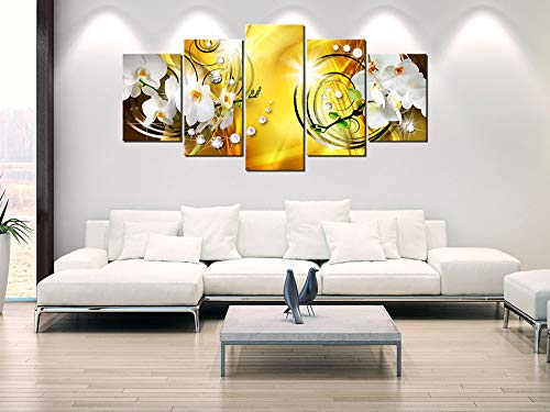 Murando Quadro 150x75 cm 5 pezzi Stampa su tela in TNT XXL Immagini moderni Murale Fotografia Grafica Decorazione da parete Fiori Orchidea Perle Diamant b-A-0257-b-n