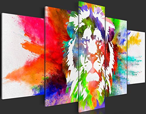Murando Quadro 200x100 cm 5 pezzi Stampa su tela in TNT XXL Immagini moderni Murale Fotografia Grafica Decorazione da parete Astratto Animale Leone colorito g-C-0019-b-o