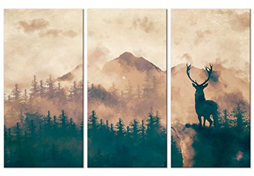 Murando Quadro Cervo 120x80 cm 3 pezzi Stampa su tela in TNT XXL Immagini moderni Murale Fotografia Grafica Decorazione da parete Paesaggio Montagna Foresta Nebbia Animali c-A-0210-b-e