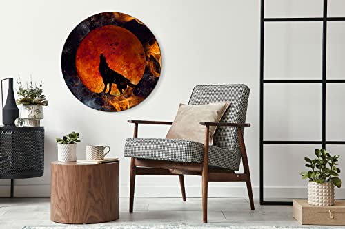 Murando Quadro Rotondo Lupo 60x60 cm 1 parte Stampa su tela XXL Immagini moderni Murale Fotografia Grafica Decorazione da parete Animale Fuoco Sole g-C-10005-bc-a