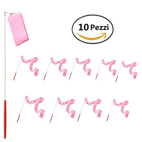 MUROAD 10 Pezzi 4 Metri di Lunghezza Palestra Nastro per Ginnastica Ritmica,Danza Nastri di Ginnastica Ritmica Streamer Baton Twirling Rod Seta Attrezzi per Bambini (Rosa)