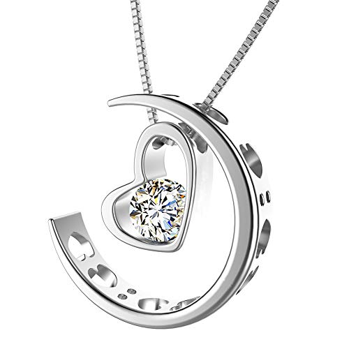 Collana Luna per Donna: Ti amo tantissimo. Combine moon and heart, this necklace represent so much love that the distance will not drive us apart. The image of moon is feminine and soft, questo gioiello è il modo perfetto per dire che ti amo.